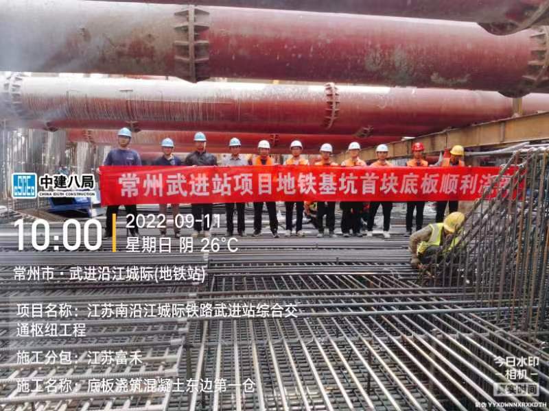 首段底板的顺利浇筑完成,是6号线预留站项目部几个月来艰苦奋斗所取得的阶段性成果,为南沿江城际铁路武进站综合交通枢纽工程——6号线预留站主体结构施工奠定了良好的基础。