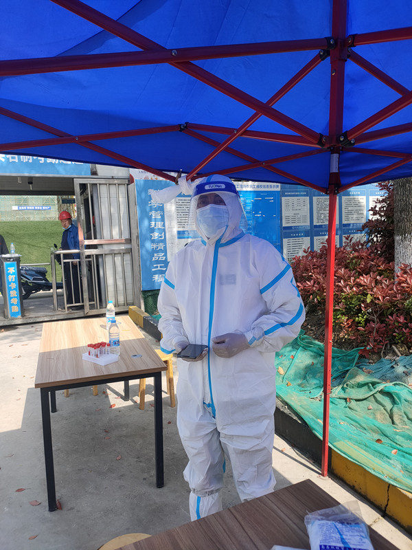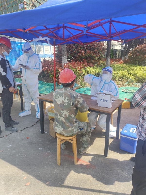 我电子显示器生产项目部积极行动起来,在收文第二日的4月6日,对项目所有人员开展了核酸检测。之前,我公司主动做好桌椅、遮阳棚等必备设施的准备工作,中午12点核算检测人员抵达现场,在组织者、志愿者等密切配合下,很快即有序、顺利地完成了核酸检测工作。