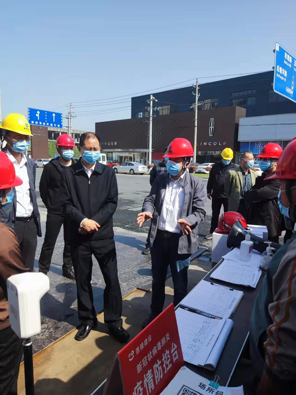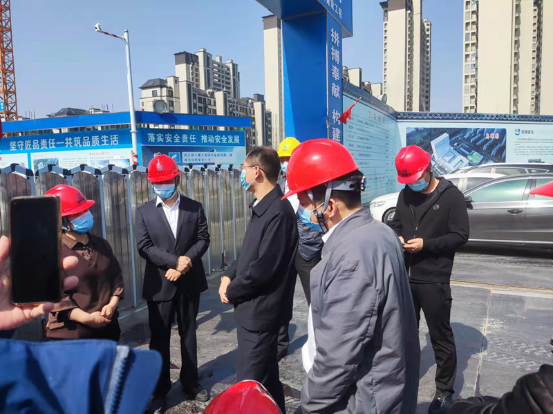 2022年4月8日上午,常州市住建局局长彭峻率市、区两级主管部门领导,来我公司参建的“茶花路西侧、丁香路南侧(CX060303-01)地块建设工程项目”进行防疫工作调研,并发放了防疫物资。