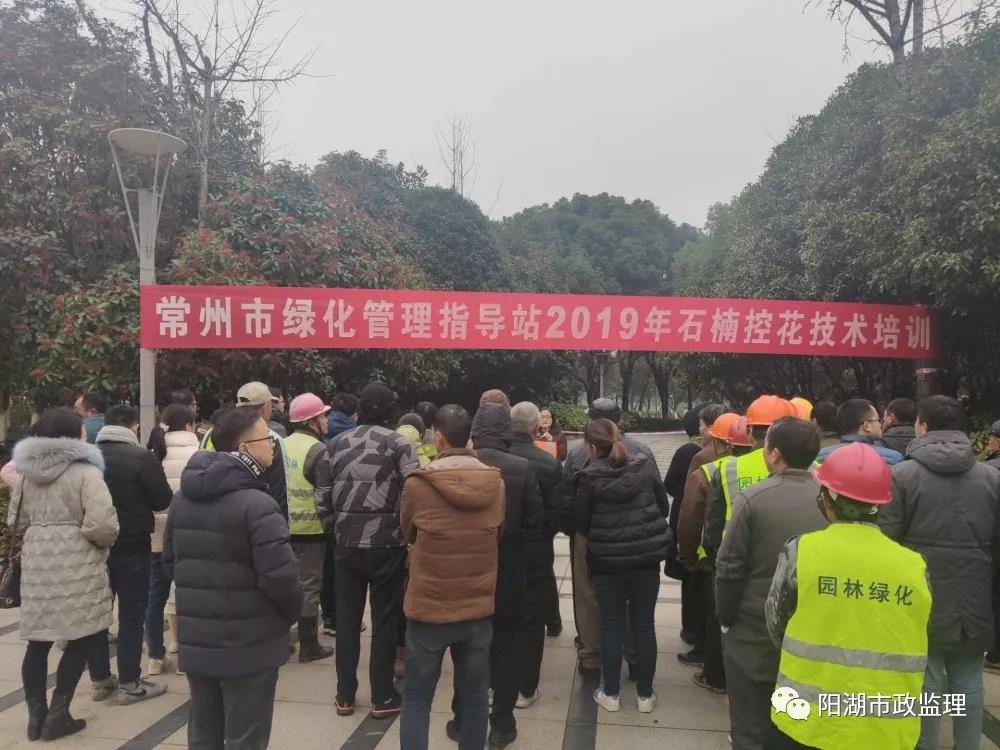 2019年12月26日下午两点,常州市绿化管理指导站在新北区市民广场召开石楠控花技术培训会,我公司驻武进市政处项目部与武进市政处和养护单位一同参与培训。